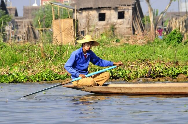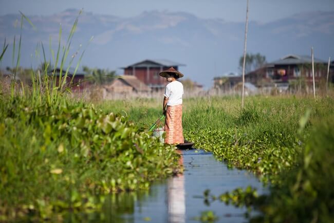 Inthar people live entirely, and build houses on the lake. The initiative considered to be the greatest of Inthar is that they cultivate crops on the water by forming floating rafts from the remains of duckweed, moss and fixing them with bamboos put into the bottom of the lake. Thus, these "floating fields" will rise and fall according to the water level of the lake.