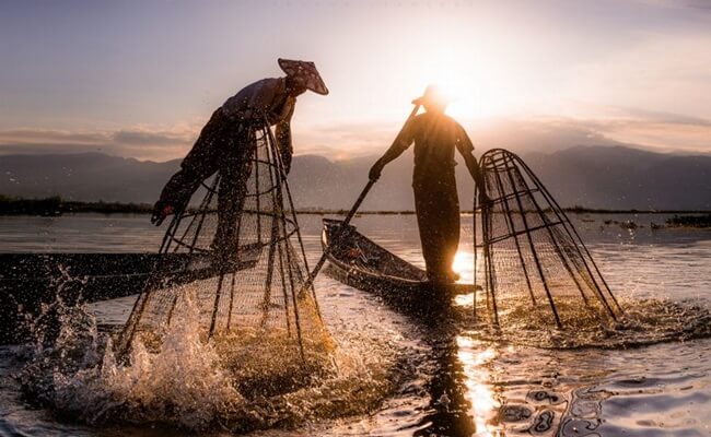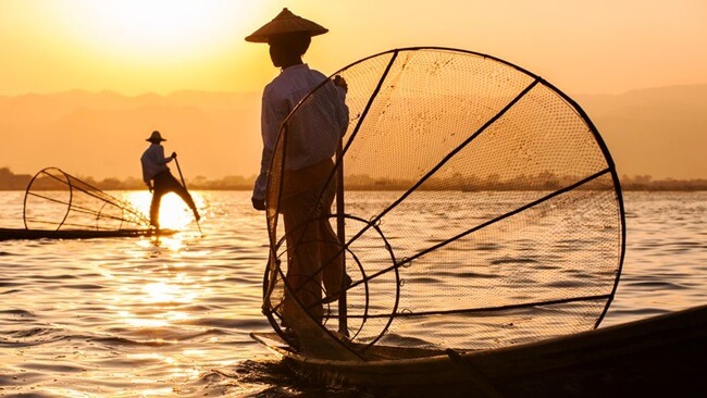 Scattering in the eastern dawn is the shade of fishermen launching net on the lake. The image of Inthar men sailing with one leg on a small canoe has become a unique cultural characteristic of the region. Inle not only attracts visitors by its wild beauty and eco-friendly resorts, but it is also a destination for many visitors who want to learn about a cultural area with a long history.